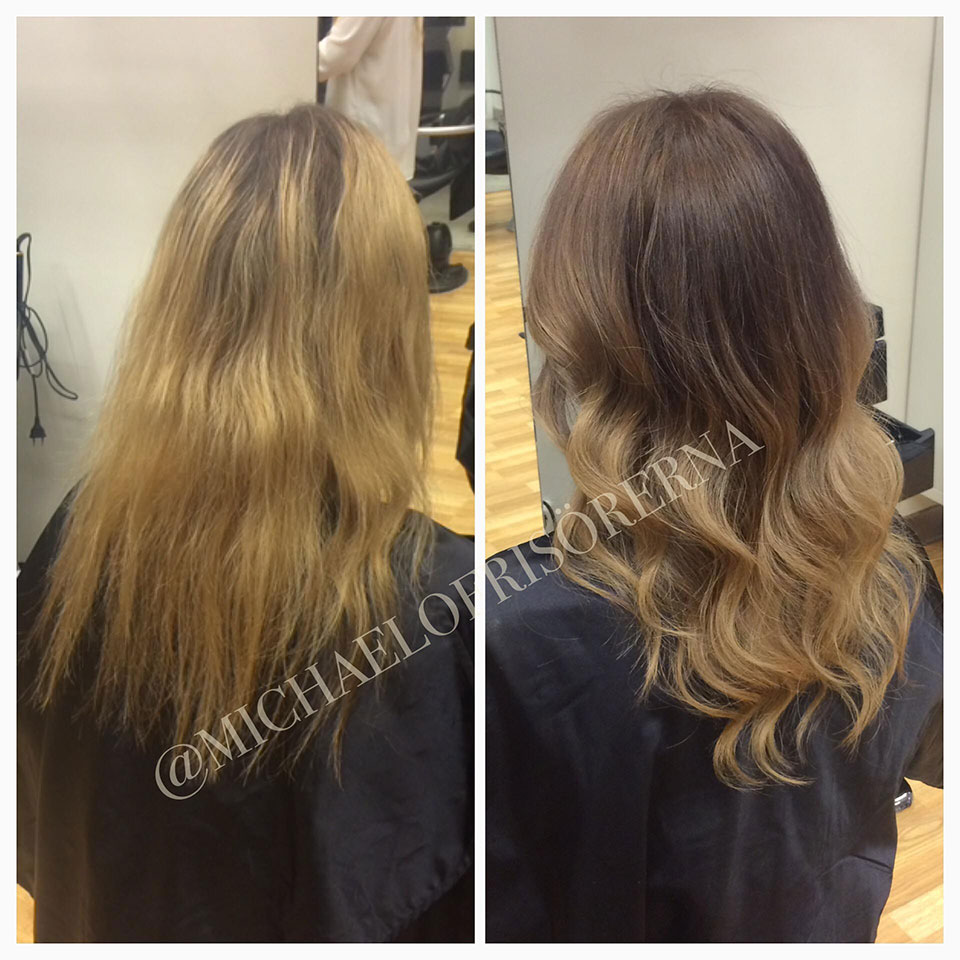 Vår frisör Carro gör en snygg balayage. Hon börjar med att tona in det i två olika nyanser, och ljusar sedan upp några slingor för att få lite mer spel i håret.