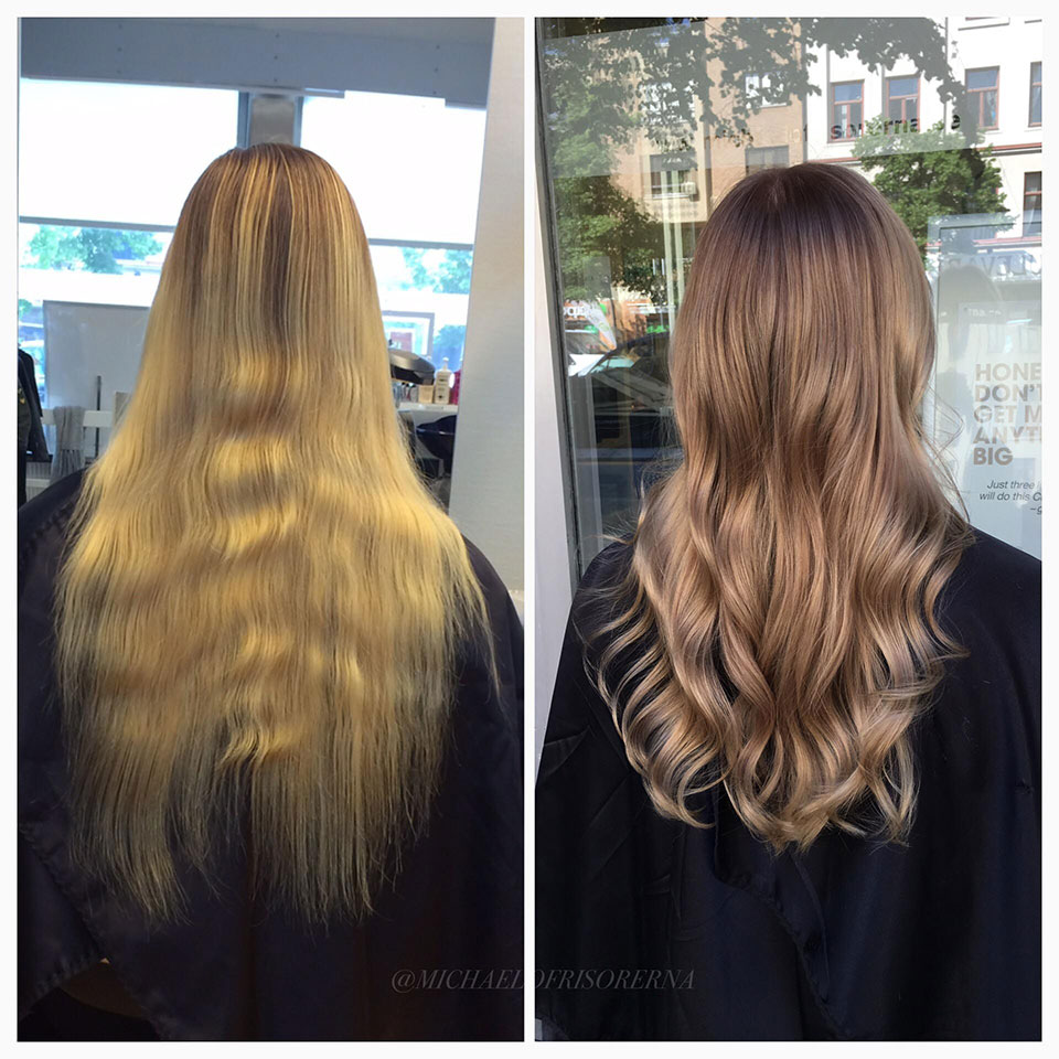 Vi tonar håret i en kall beige nyans, med inslag av lite rosé.