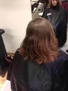 Sandra gör en ombre på ett kortare hår.